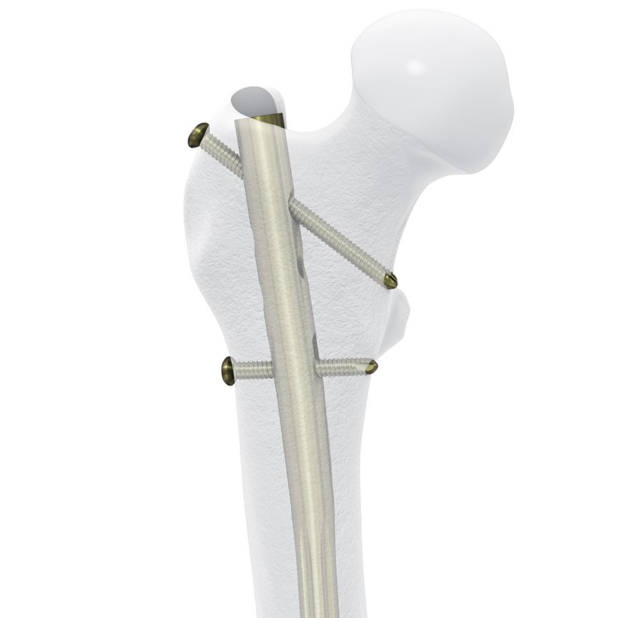 The Lateral Entry Femoral Recon Nail–EX is designed to facilitate a lateral trochanteric entry site in the greater trochanter, providing ease of access while reducing the chance of varus deformity.